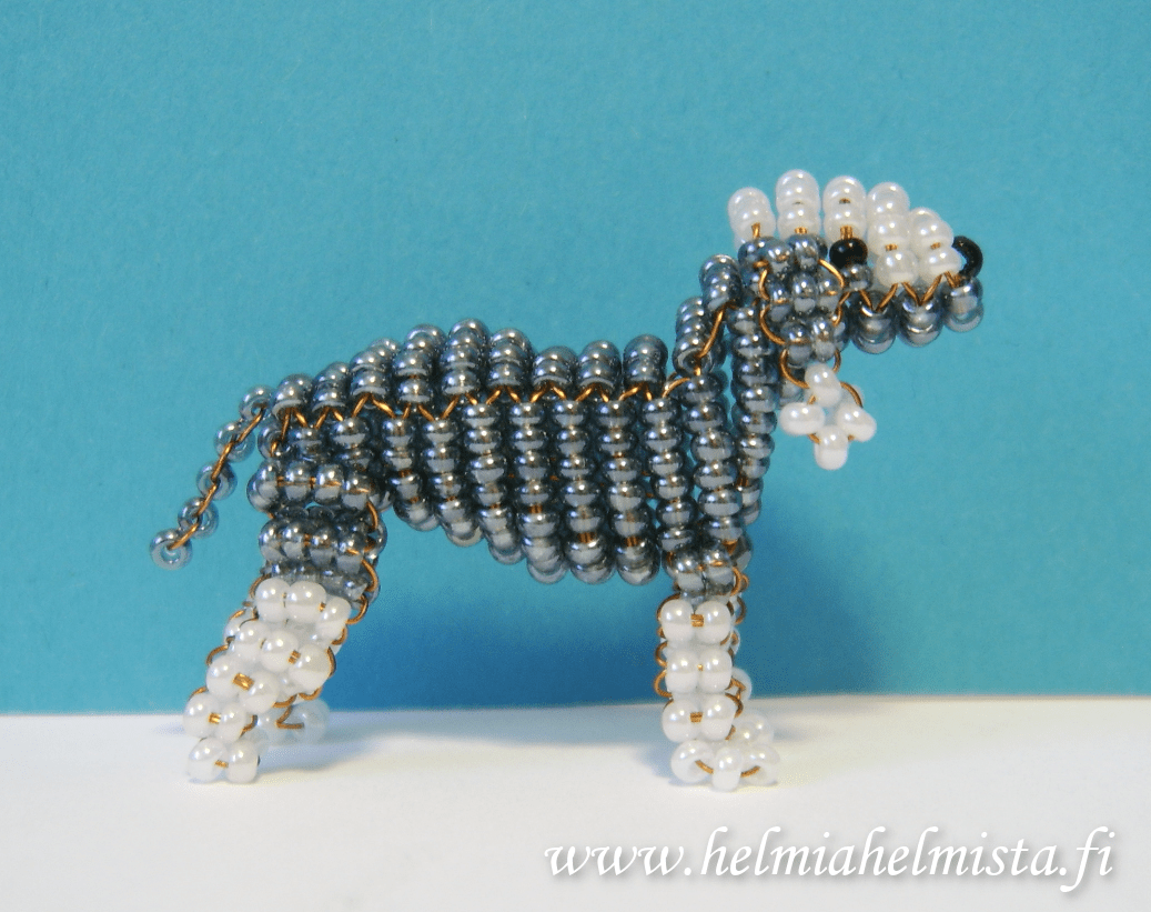 Finished Bead Dog, length ca 5cm, height ca 4cm. Default colour is same as in the picture. If you like to have some other colour, please write a description of it in the Comments field during the checkout.