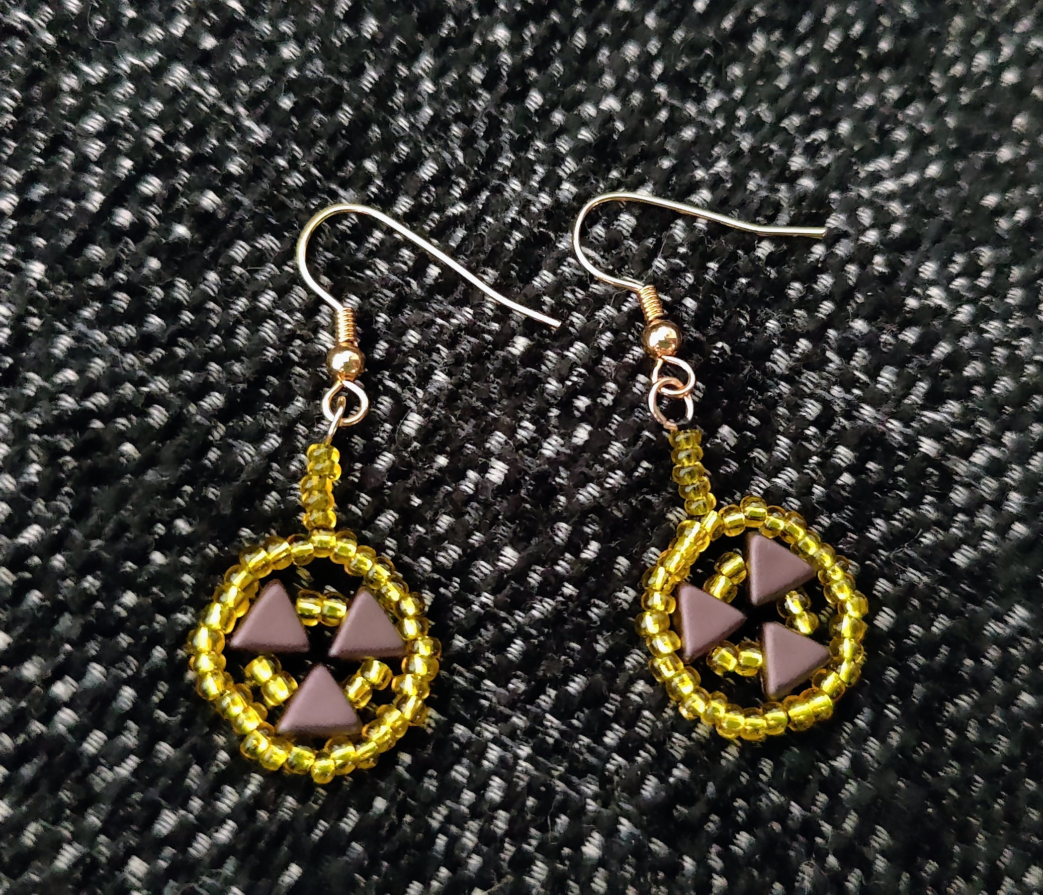 Finished earrings. Size ca 2cm. Default colour is same as in the picture. If you like to have some other colour, please write a description of it in the Comments field during the checkout.