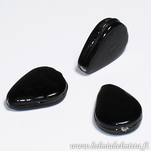 Lampwork Bead Drop flat ca.26x20mm Black 1pc