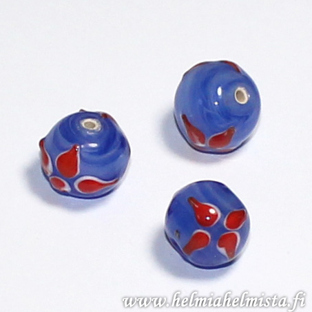 Lampwork Bead Round ca.14mm Blue with red pattern 1pc quantity