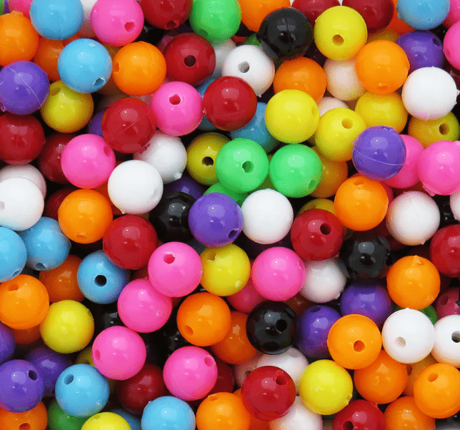 Pyöreä akryylihelmi, halkaisija 6mm. Lajitelma eri sävyjä.