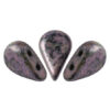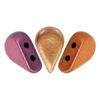 Pisaranmuotoinen lasihelmi, jossa kaksi reikää.