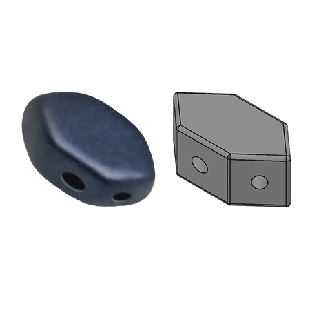 Timantin muotoinen lasihelmi, jossa kaksi reikää.